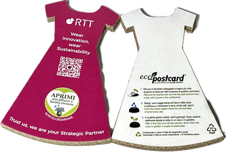Utilizzata come omaggio per fiere ed eventi, come strumento per campagne di comunicazione o come biglietto di auguri per dipendenti, clienti e fornitori, Eco-Postcard® diventa un’esperienza.